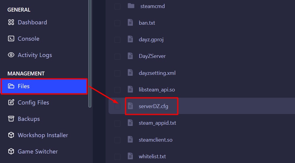 Filestab then openserverDZ.cfg