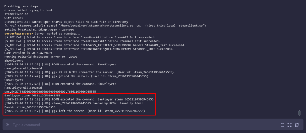 Note: Always double-check the Steam ID to avoid accidentally banning the wrong person.