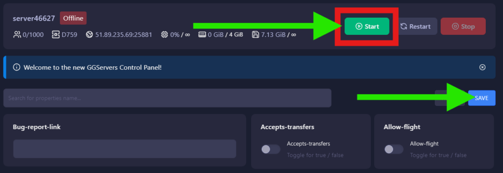 - Find Online-mode and switch the box to enable or disable, save and start your server.