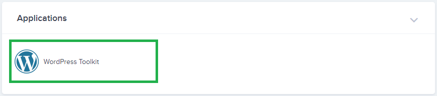 - Scroll down a bit, find the ” Applications ” section and click on ” WordPress Toolkit “.
