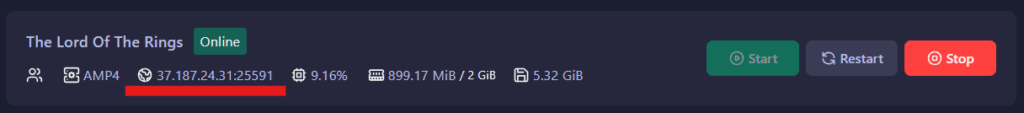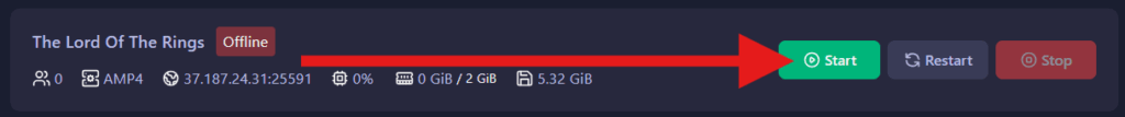 If the server isn’t running, click Start and wait a few seconds for it to go online.