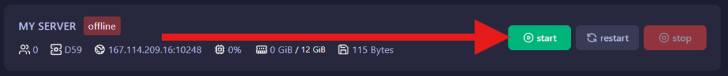 If you’re using GGServers, just hit the green Start button in your game panel and wait until the console says it’s ready.