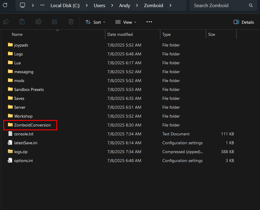 1. Create a folder at any location you’d like on your computer (e.g., ZomboidConversion) to keep track of files.