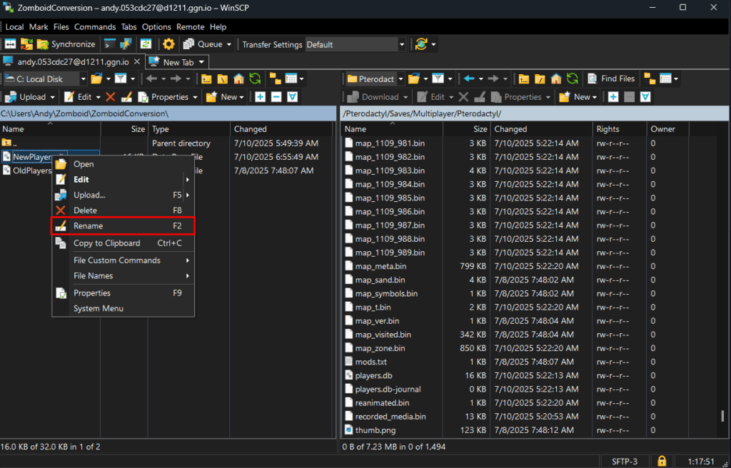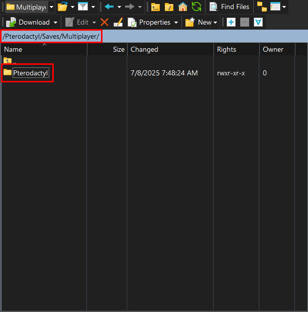 2. Open your WinSCP, and navigate to: /Zomboid/Saves/Multiplayer/YOUR_WORLD_NAME.