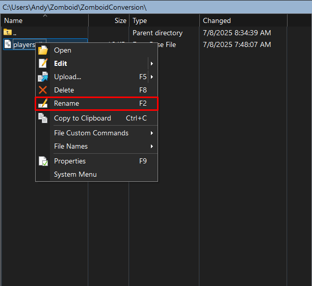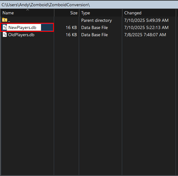 1. In your workspace folder, rename the edited NewPlayers.db file back to: players.db.
