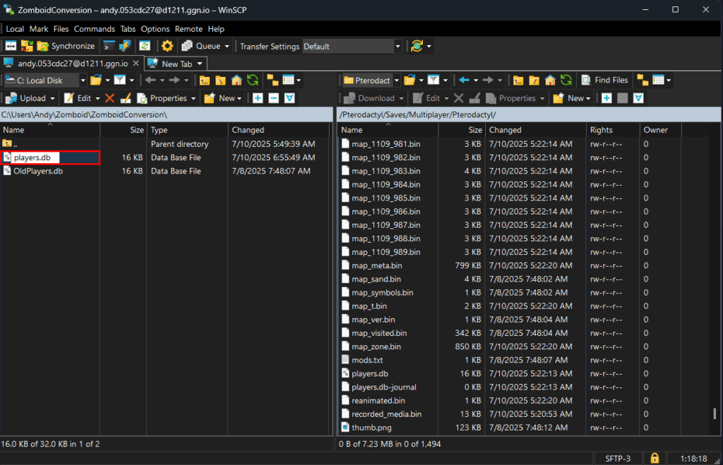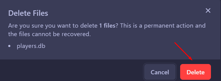1. In yourFiles panel, delete the existing players.db file to avoid format conflict.