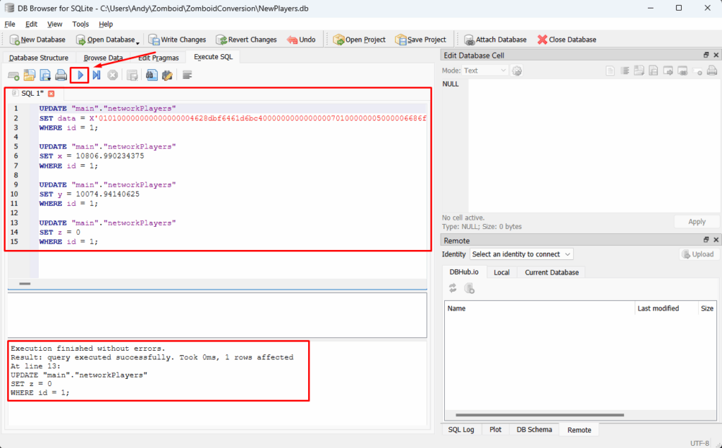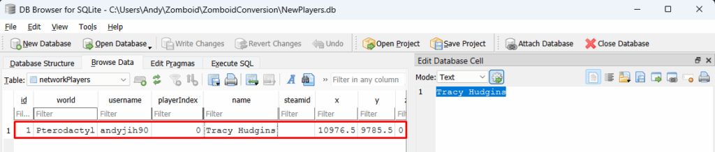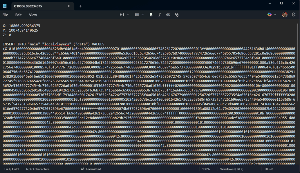 You’ll now be inserting the data you copied from oldPlayers.db (your Singleplayer save) into the networkPlayers table of the Multiplayer save.