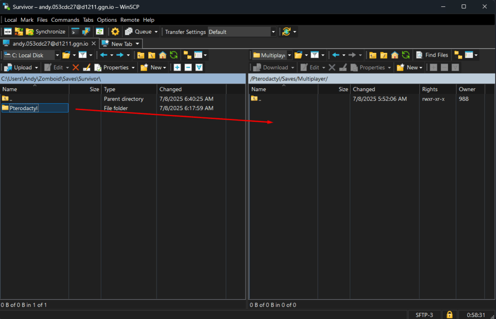IMPORTANT: If you want to save your current world on the server, make sure to download it using WinSCP before deleting it.