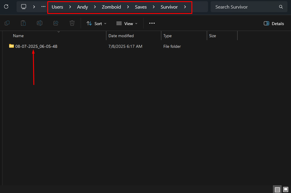 Inside this, you’ll find subfolders like Sandbox, Survival, etc., depending on the gamemode your save was created in.