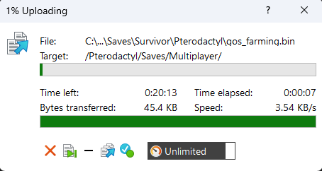players.dbfile in the uploaded world folder.- ⚠️ Warning: Deleting it will reset all player data, including inventory and position.