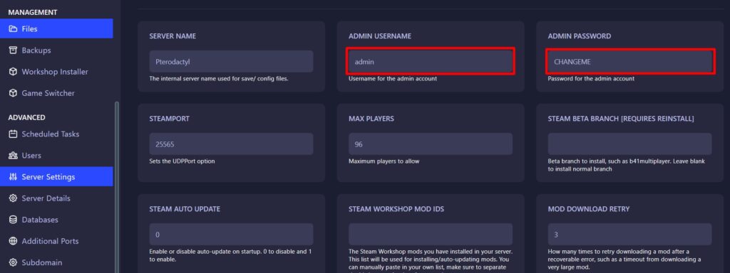 - On your game menu, choose “join”, select the server and change the Account Username and Account Password to the Admin Username and Password you set on the panel previously