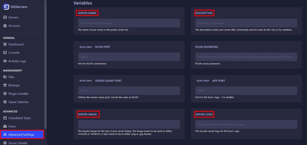 This guide will help you update the name, description, logo and image of your Rust server so that it appears exactly how you want it in the server browser. Whether you’re personalizing your server for a community, adding helpful info for players, or just making it stand out, we’ll walk you through the steps to make these changes easily from your control panel.