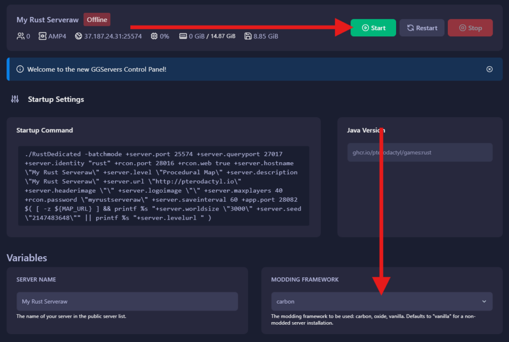 Modding FrameworktoCarbon - Start the server