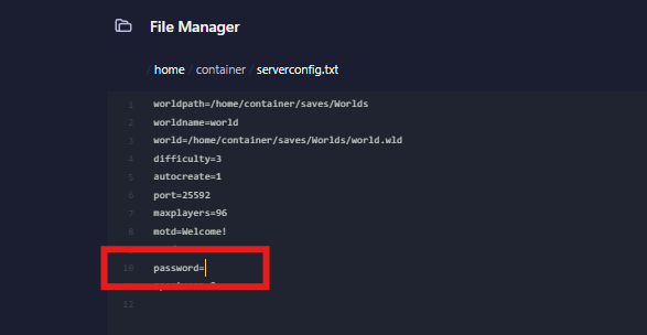 - Open the “serverconfig.txt” file and find the setting labeled “password”.