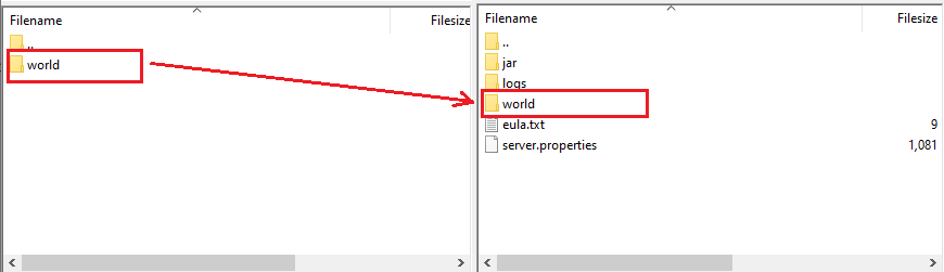 - Prepare the new world folder you want to upload and please be sure it is not named the same as your old/ actual world folder name. You will have to note the name of the new world folder.