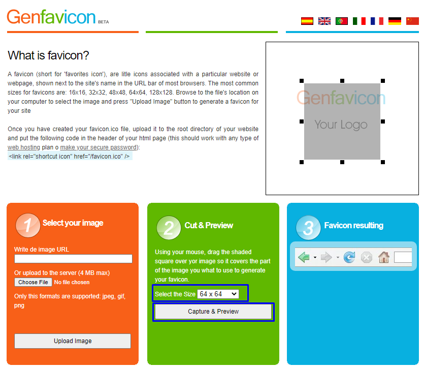 64 x 64at theSelect in Sizecampus, then click onCapture & Preview.
