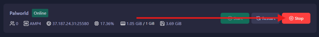 - Click on your Palworld server, then click on