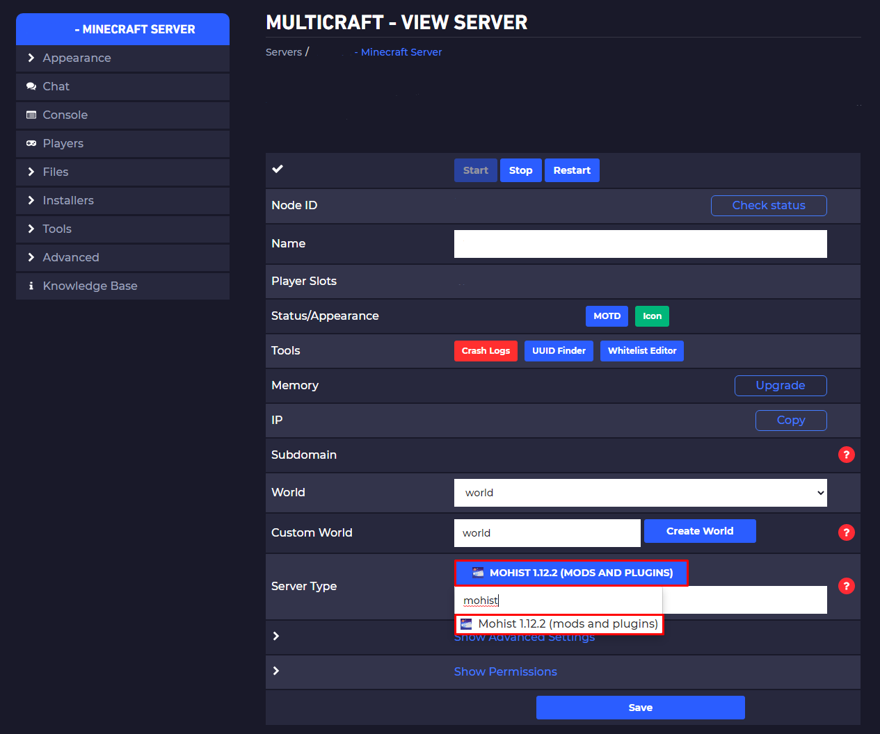 Server Typeand select Mohist.