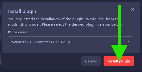 The easiest way to install plugins on your server is using the Plugin List from your Multicraft panel.