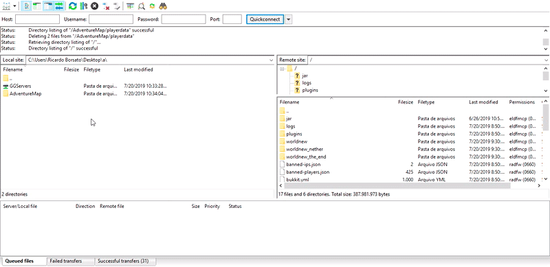 - Use FileZilla to upload your custom world to the server’s root directory.