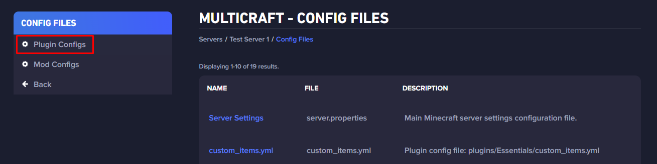 Plugin Configs.