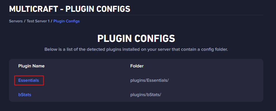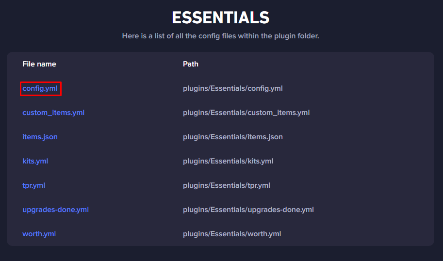 Essentialsand then click onconfig.yml.