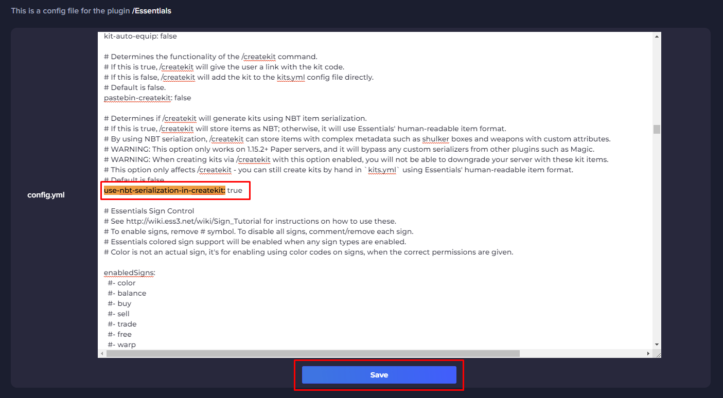 This article will show you how to allow the EssentialsX plugin to create kits using NBTs.