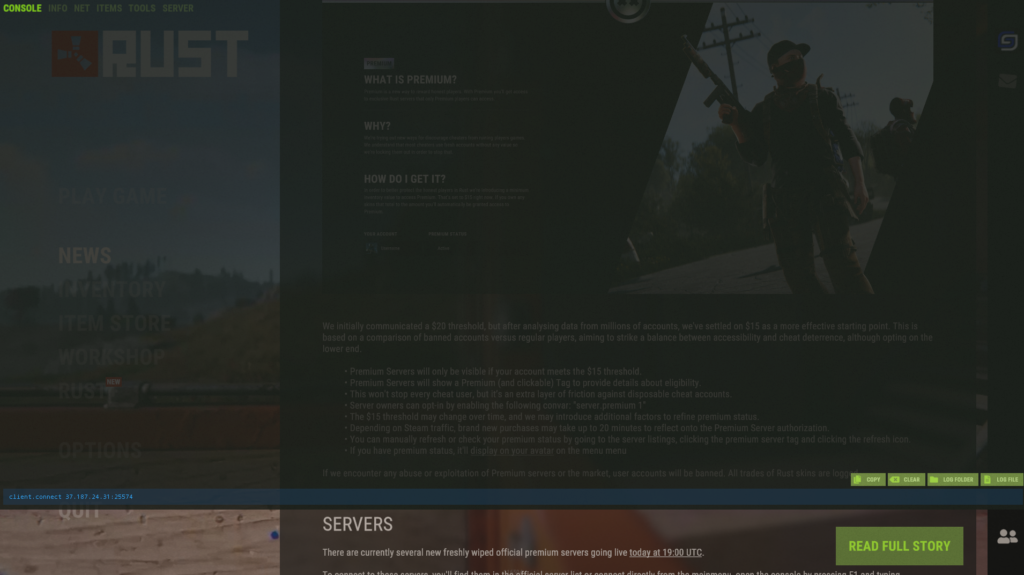 2. Connecting to a Rust Server via STEAM