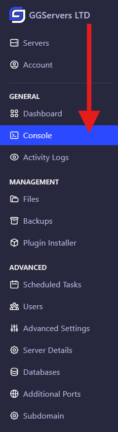 - Go to your GGServers control panel: panel.ggservers.com