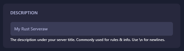 Look for the Description option and Restart your Rust Server.