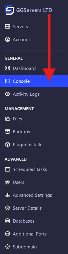 - Access your GGServers Panel.