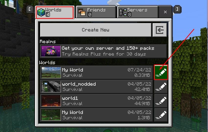 Worldsand click on the edit button for the world you just added to yourminecraftWorlds.