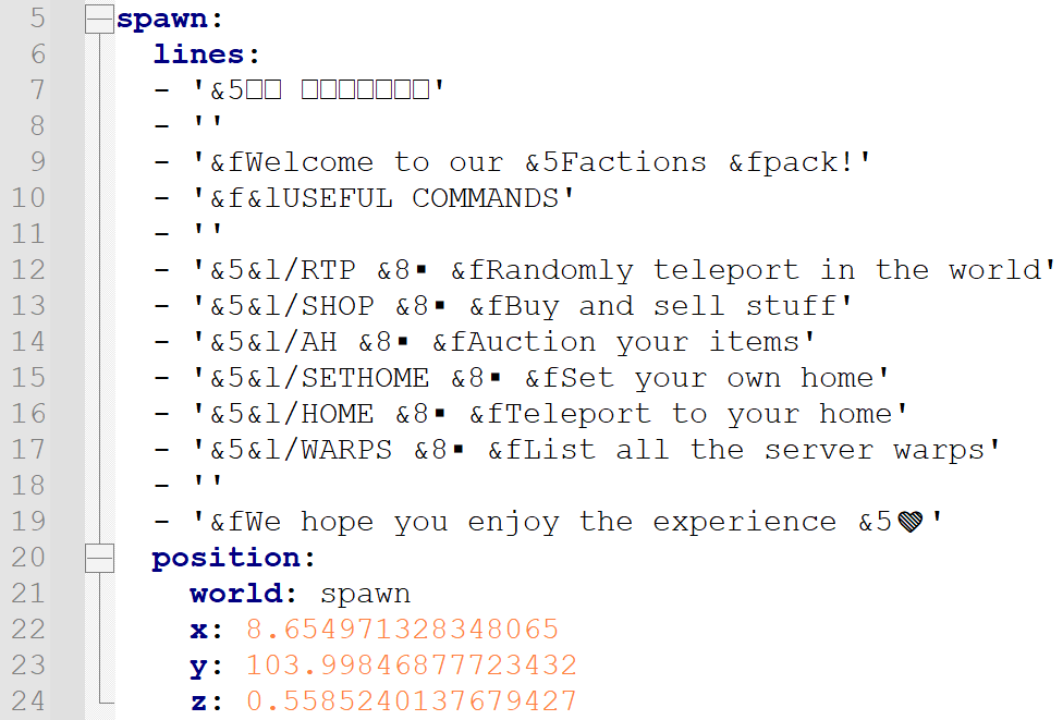 If you want to change it or other holograms, you need to go to the “plugins” folder and then access the HolographicDisplays directory. There, edit the database.yml file to your liking:
