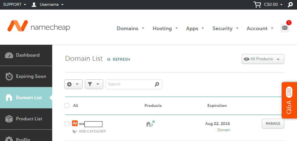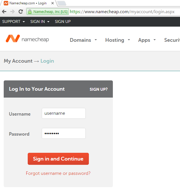 - Once you’ve purchased your domain, login to your NameCheap account. Enter the details you registered at NameCheap.