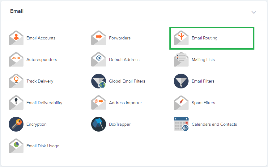 - Scroll down to ” Email ” and click on ” Email Routing “.