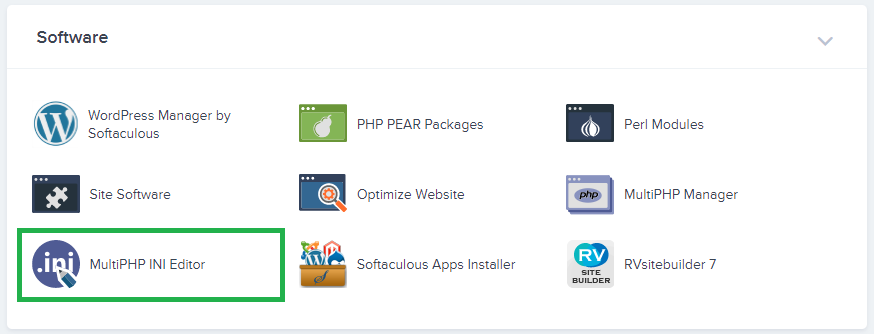 - Go to the ” Software ” section and click on the ” MultiPHP INI Editor ” option.