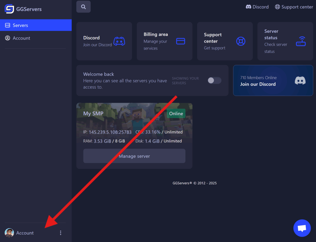 - Login to your GGServers Panel at https://panel.ggservers.com.