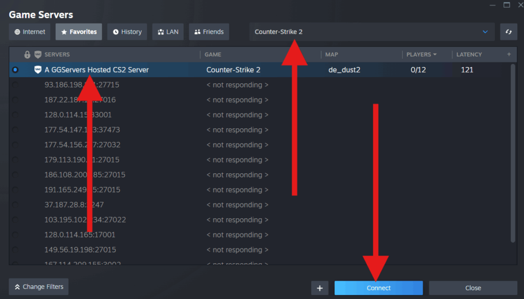 A: Double-check the IP and port, and ensure your server is online. Also, confirm that you’ve selected Counter-Strike 2 in the dropdown menu.