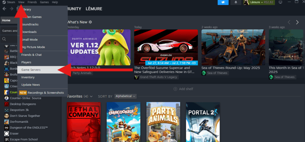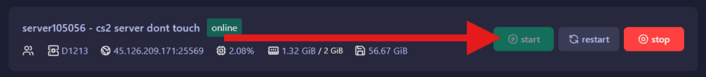 Once logged in, select your CS2 server and click the Start button. - Open Steam
