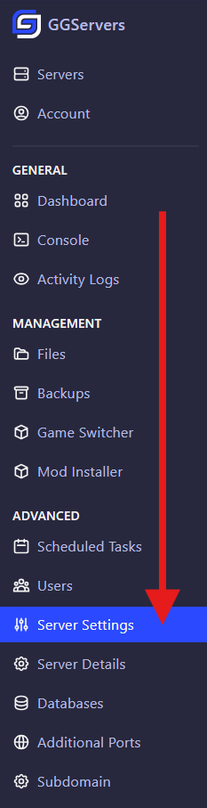 - Log in to your control panel at: https://panel.ggservers.com and