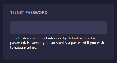 Telnet Passwordoption, change it, and you are ready to start the server!